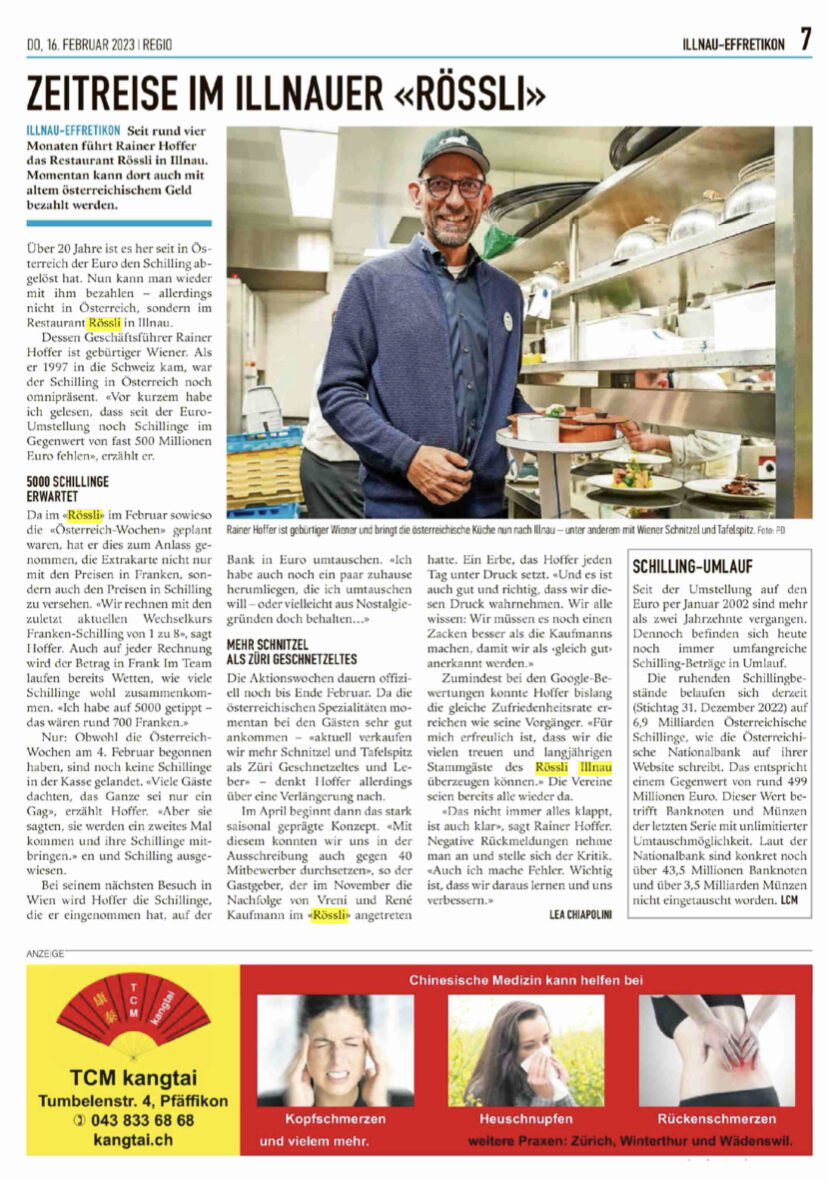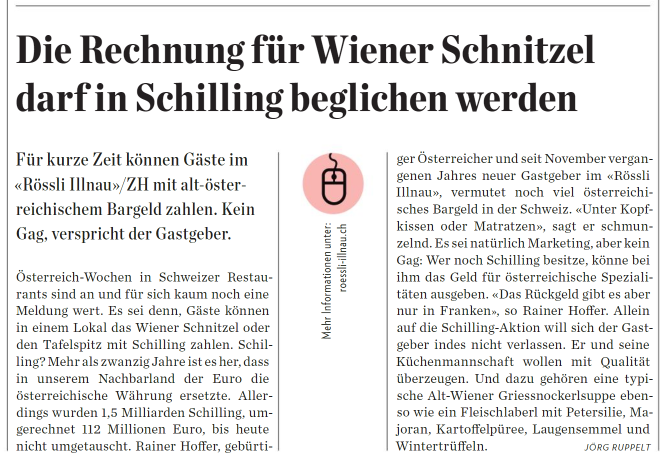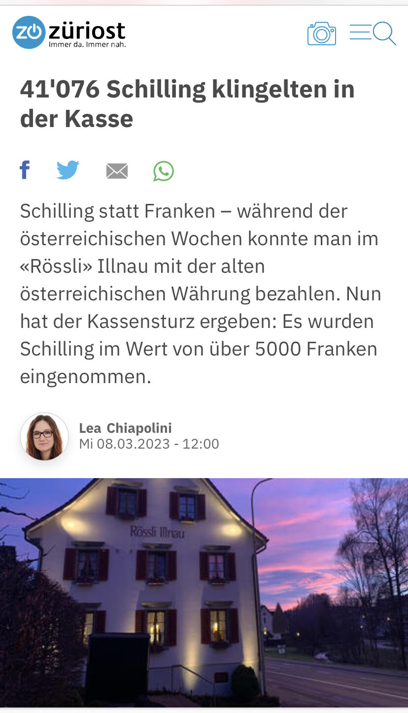 "Im Rössli Illnau können Gäste mit österreichischen Schilling zahlen"