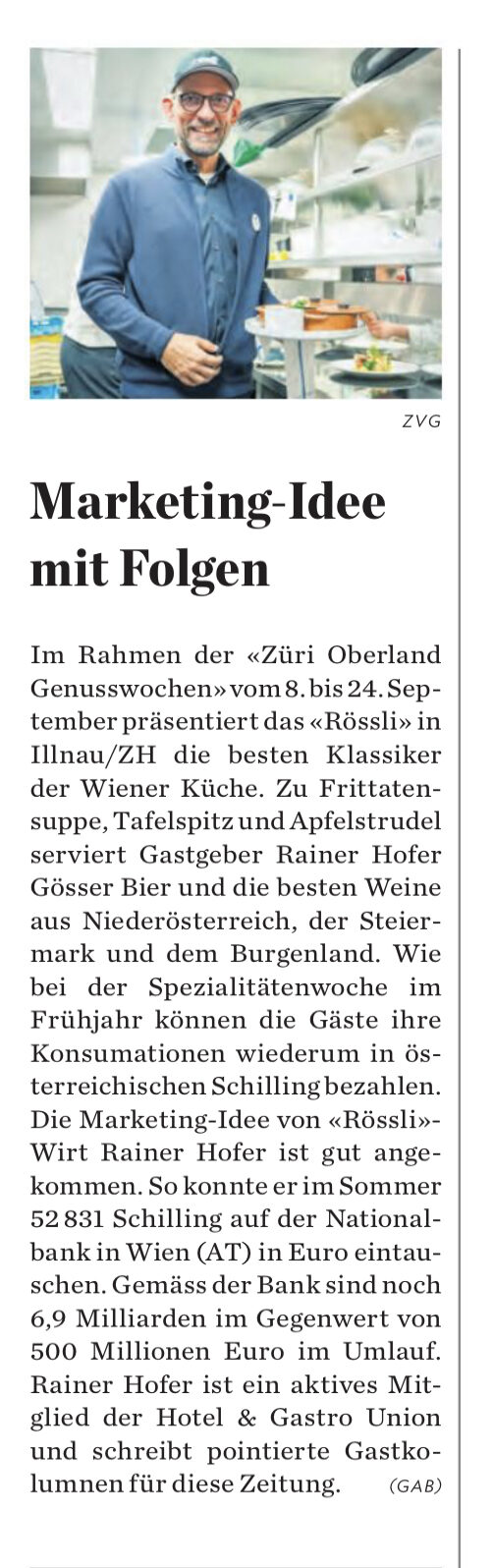 Der Newsletter von Rainer Hoffer erscheint wöchentlich auf der linkedIn-Seite vom Rössli Illnau - die besten Texte ausserdem leicht gekürzt als Kolumne in der „Hotellerie Gastronomie Zeitung, HGZ“